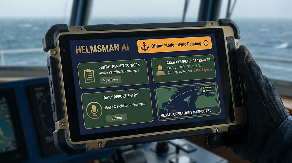 Yes! HELMSMAN AI is built with an offline-first architecture, allowing vessels to operate fully at sea without internet connectivity. Data is stored locally and syncs automatically when connection is restored. This ensures continuous operations regardless of satellite communication availability.